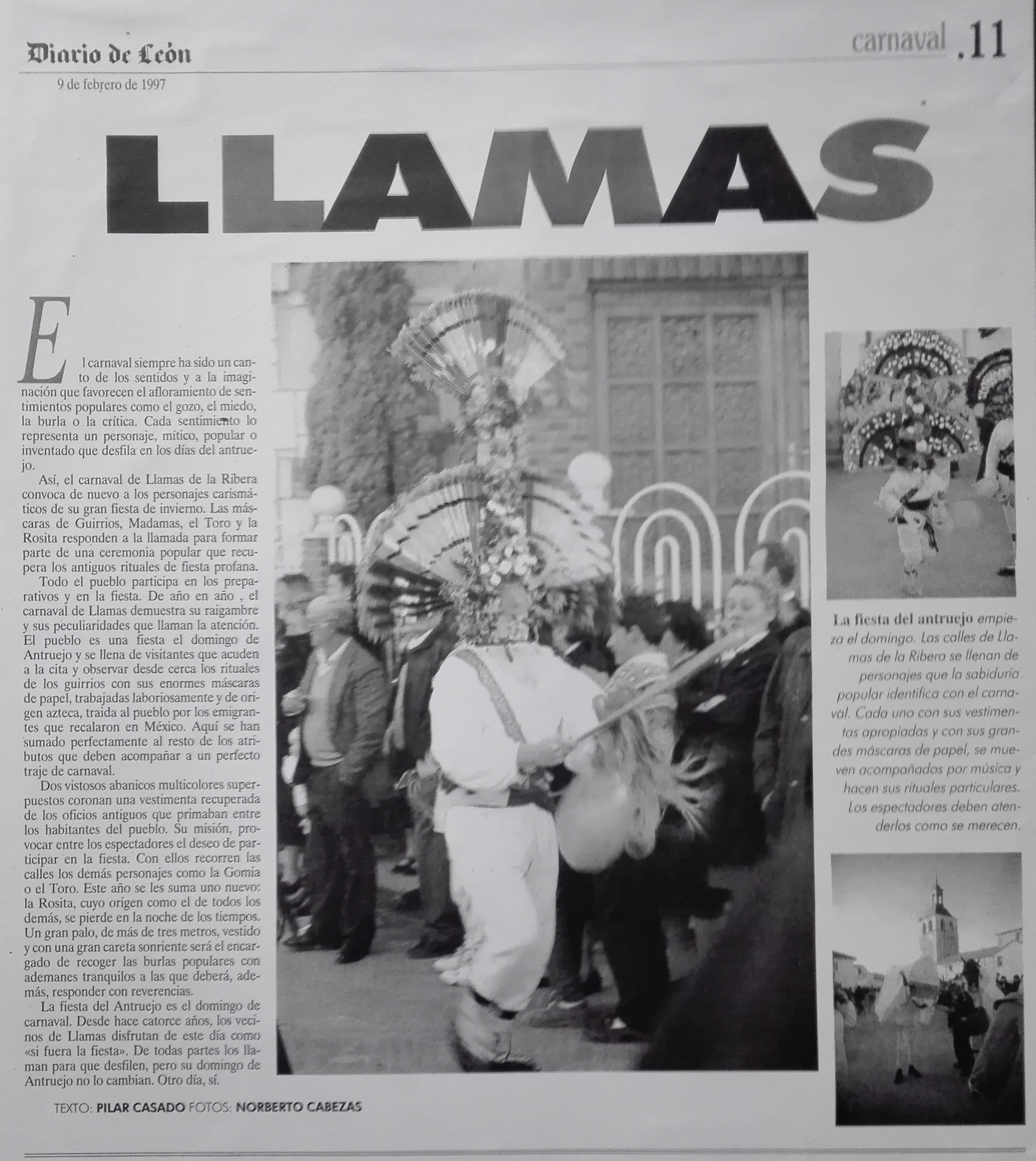 - 02/03/2011 – Guirrios y antruejos toman las calles. El Carnaval de Llamas de la Rivera, uno de los más antiguos de León. La celebración ha sido declarada Fiesta de Interés Turístico Regional. El mundo.