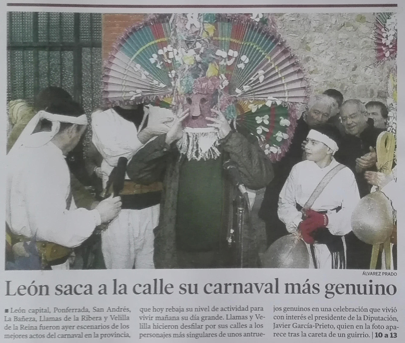- 22/02/2020 – Carnavales en León: entre comparsas y guirrios. La Bañeza, Astorga, Velilla de la Reina o Llamas de la Ribera llenas sus calles de color y espíritu festivo. ABC.