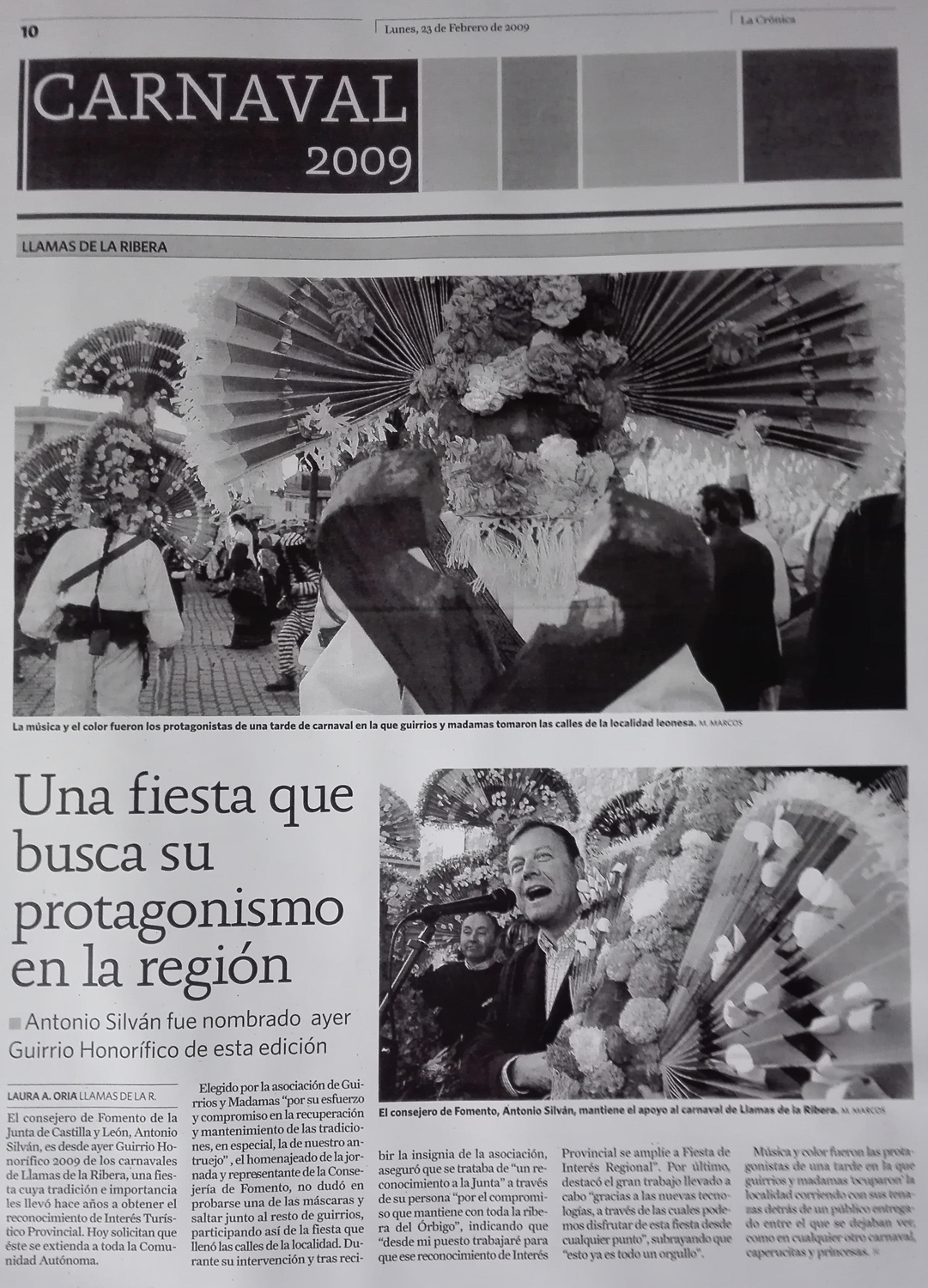 - 23/02/2009 – Traspasando fronteras. Antonio Silván, nombrado ayer Guirrio Honorífico 2009, se comprometió a trabajar desde la Junta para que el Antruejo de Llamas de la Ribera sea declarado Fiesta de Interés Regional. Diario de León.