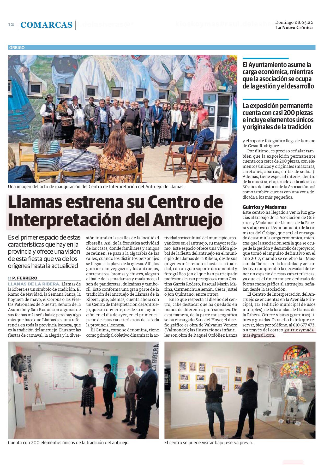 - 07/05/2022 – El primer Centro de Interpretación del Antruejo de la provincia de León abre sus puertas en Llamas de la Ribera. La exposición permanente del GUIMA cuenta con cerca de 200 piezas entre los que se encuentran elementos únicos y originales. ILeón.