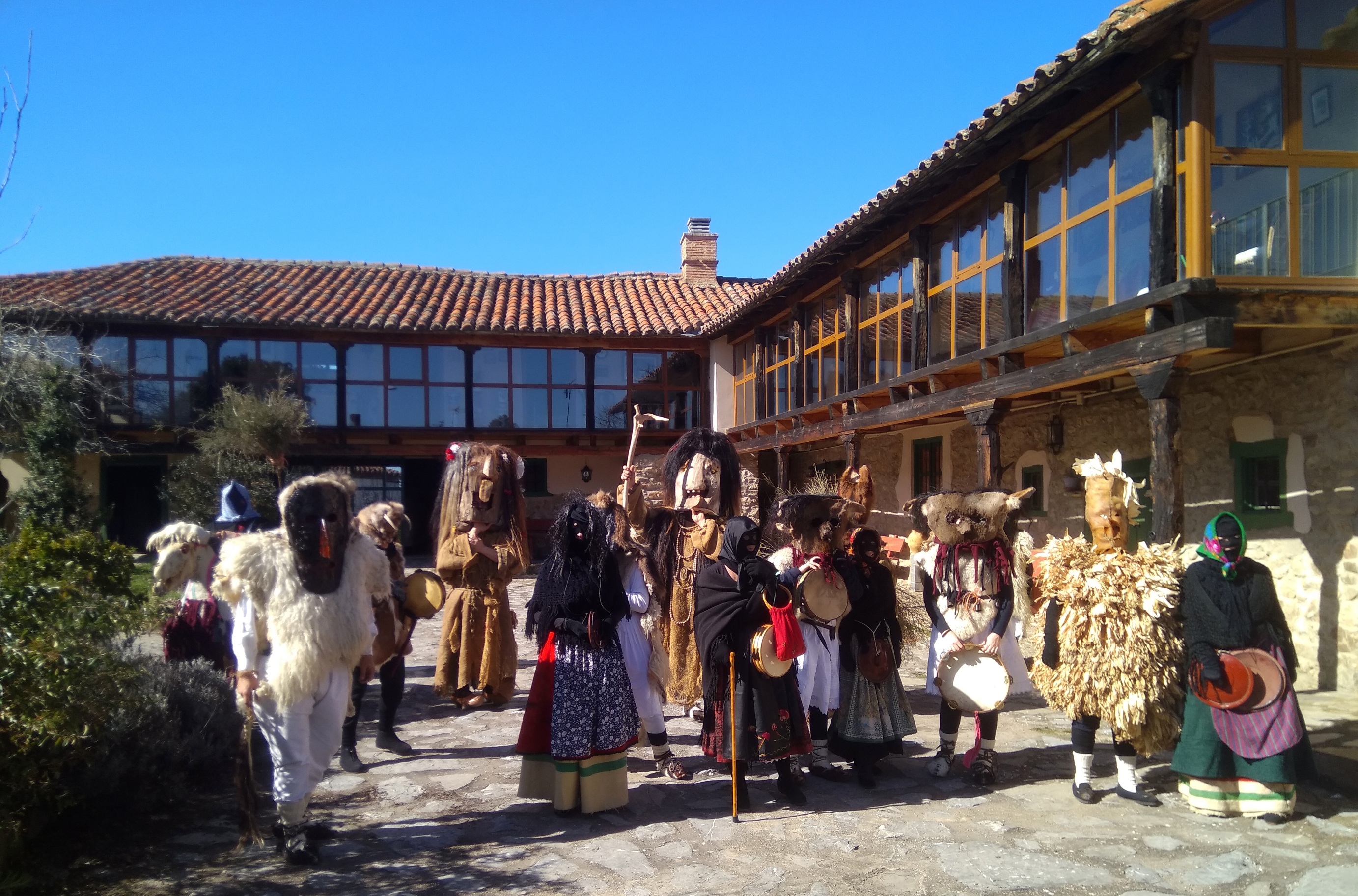 Máscaras de Guirrios, tenazas, vejigas hinchadas, tambor y panderetas